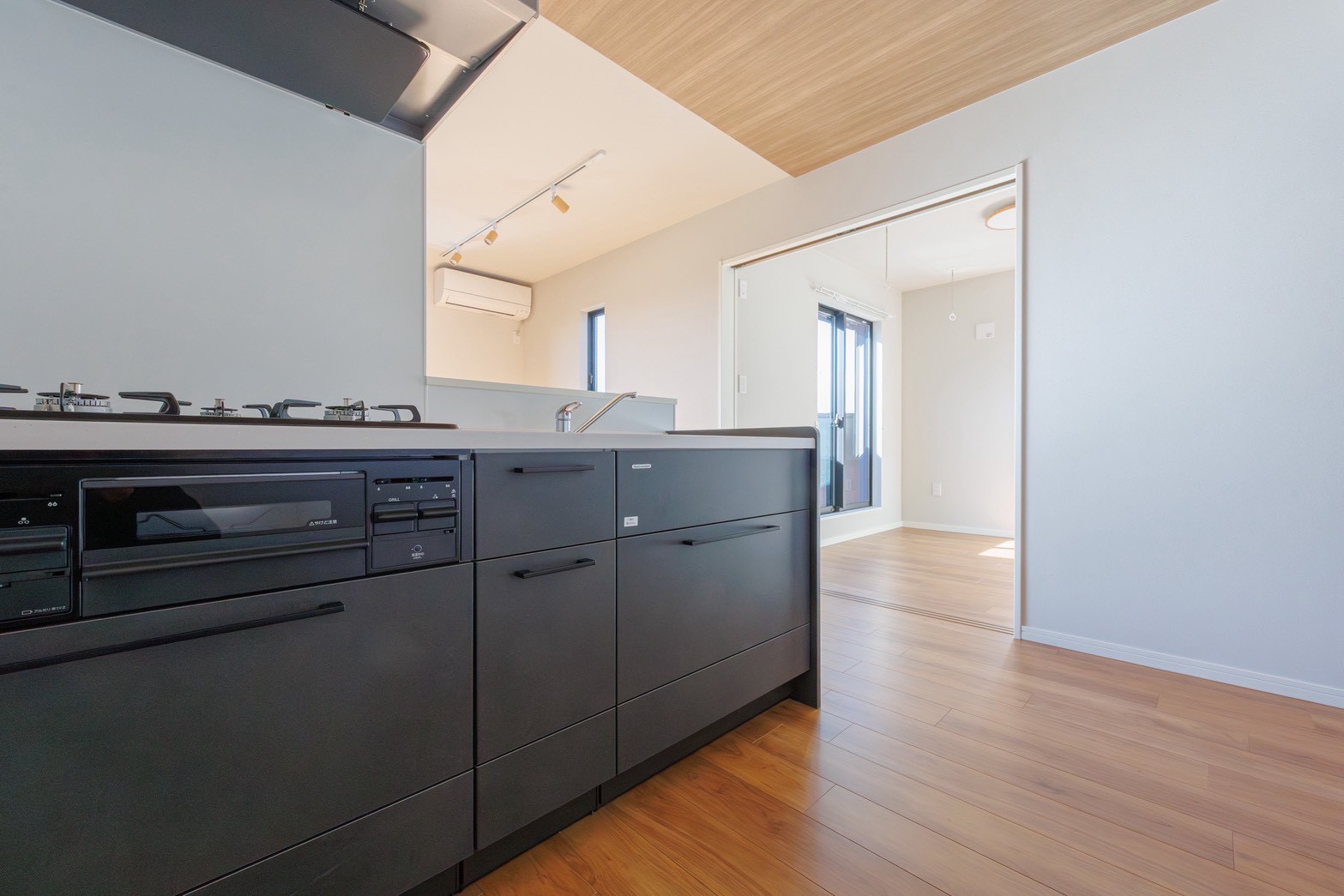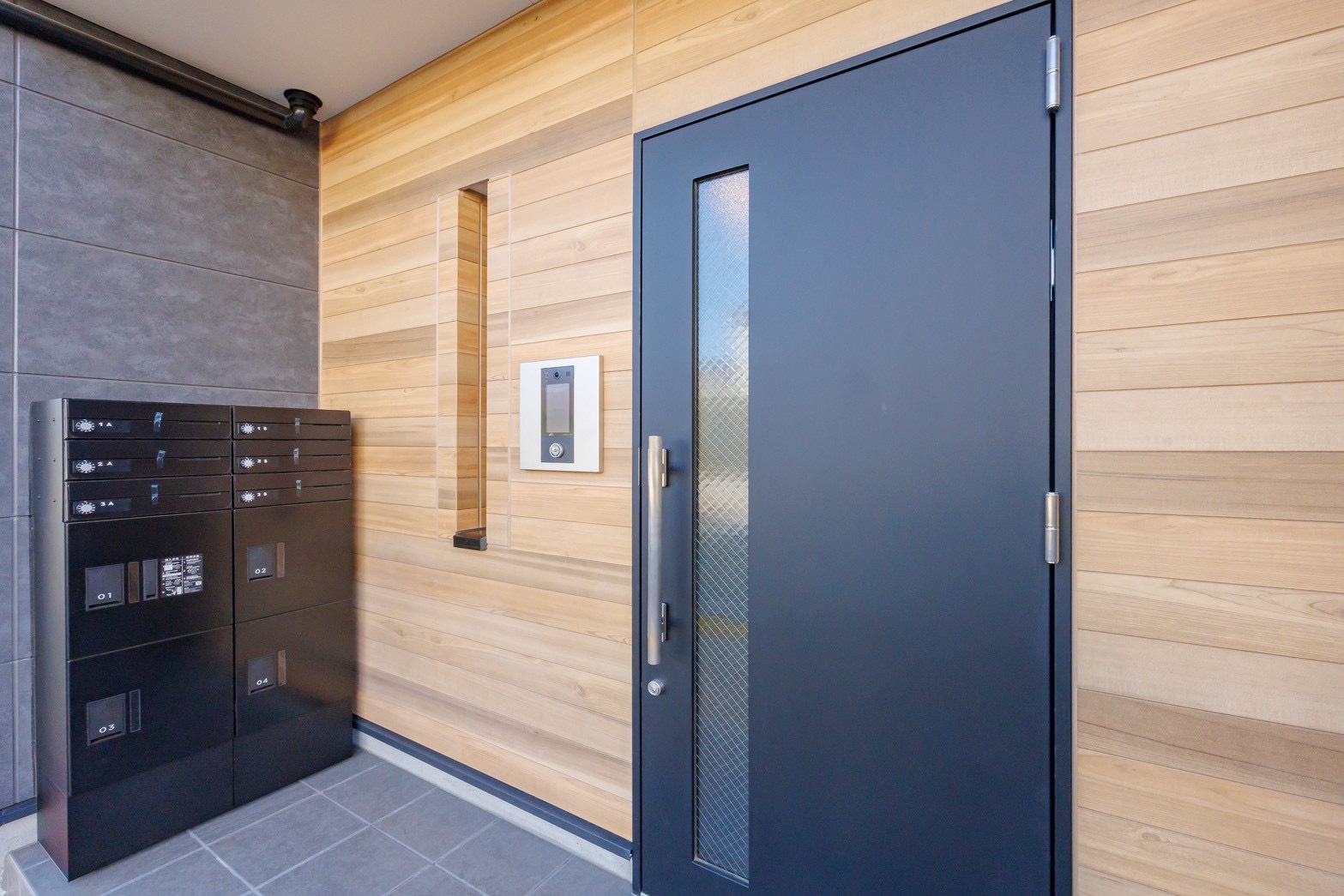 外壁はブラックを基調としたサイディングを使用して共用部には木目サイディングを使い自然との共存をテーマとしています。